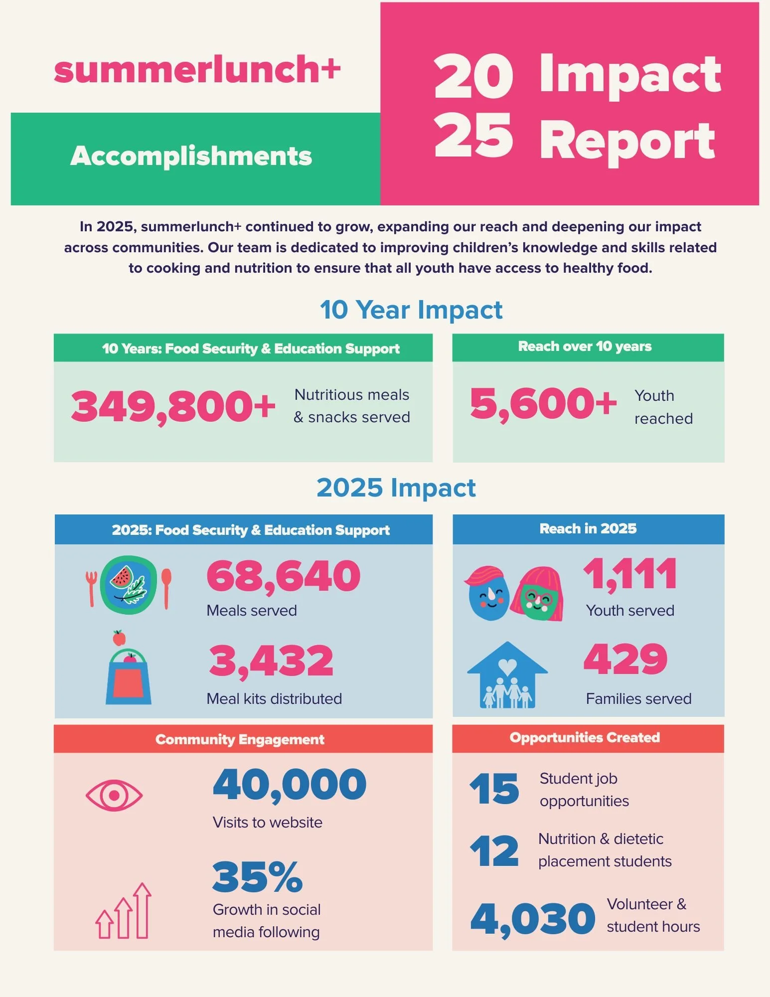 We are deeply grateful to everyone who has made this work possible. Thanks to your support, every summer more children and families have the opportunity to nourish themselves, learn new skills, and build a stronger foundation for the future.