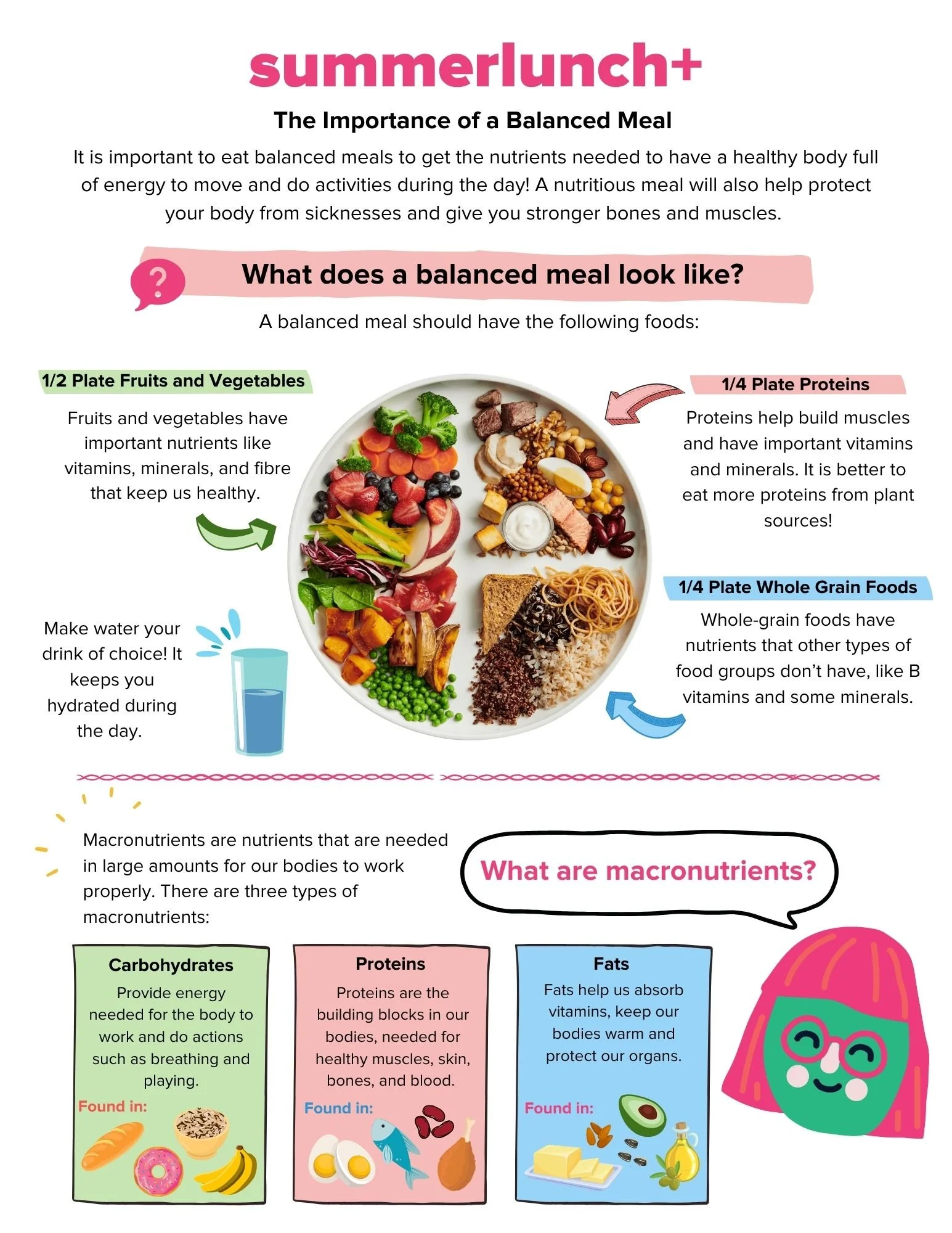 TThis week’s theme is Balanced Meals. Through the videos and activities, you will learn all about building a balanced meal and will be introduced to the plate model by Canada's Food Guide.
